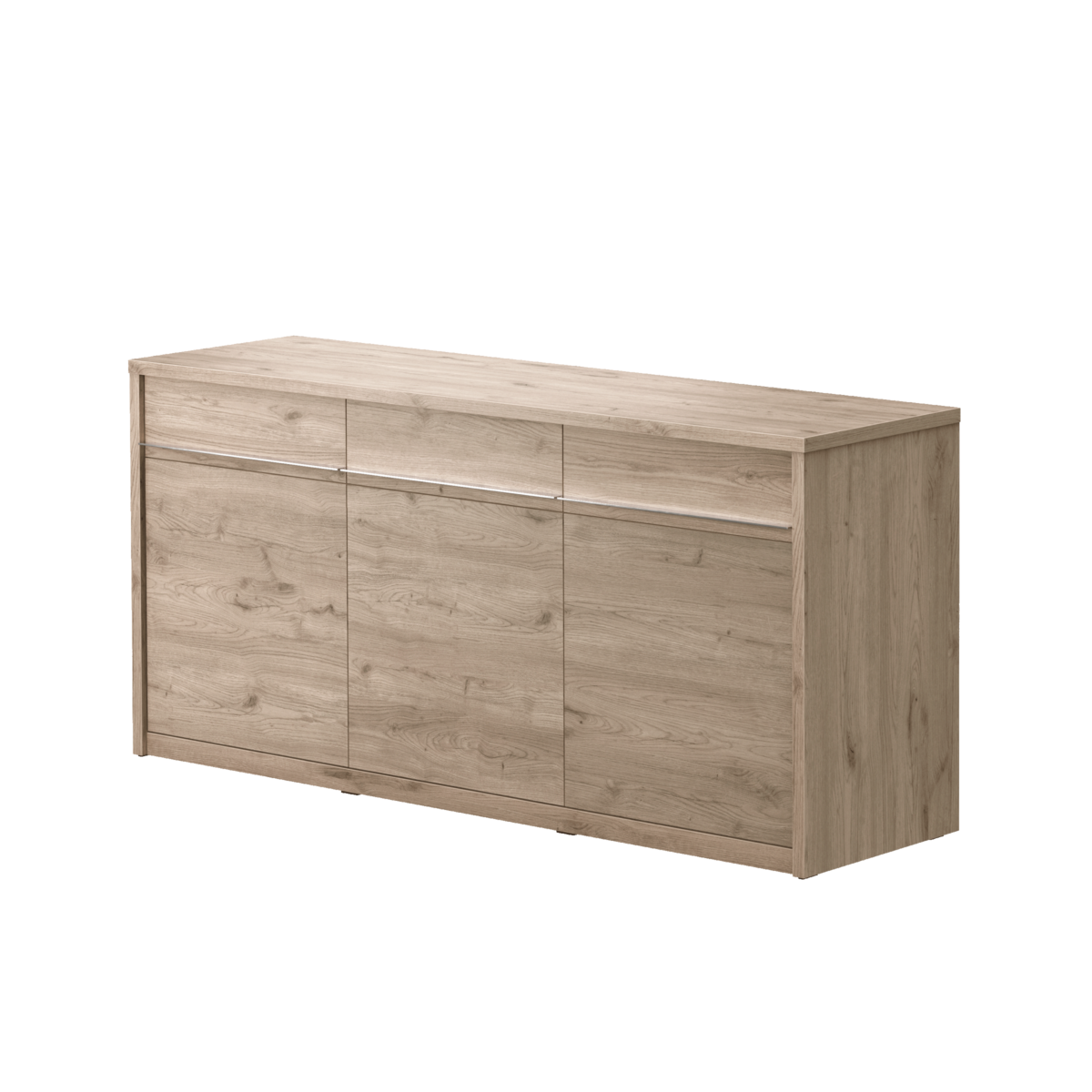 - O aparador Toronto Vita é composto por três gavetas e três portas, para que não lhe falte espaço para arrumação.