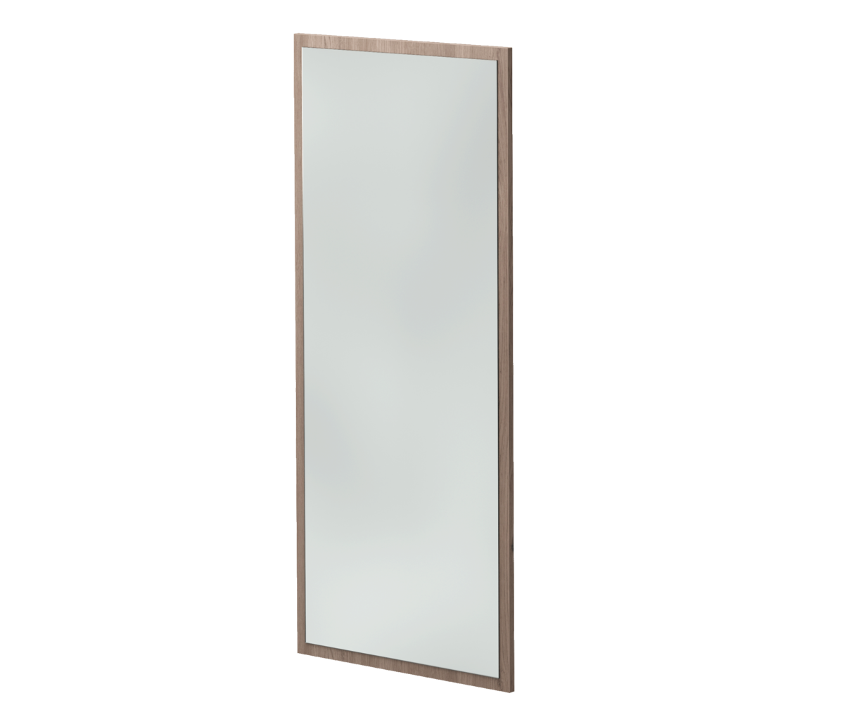 - Espelho com moldura no tom carvalho/oak.