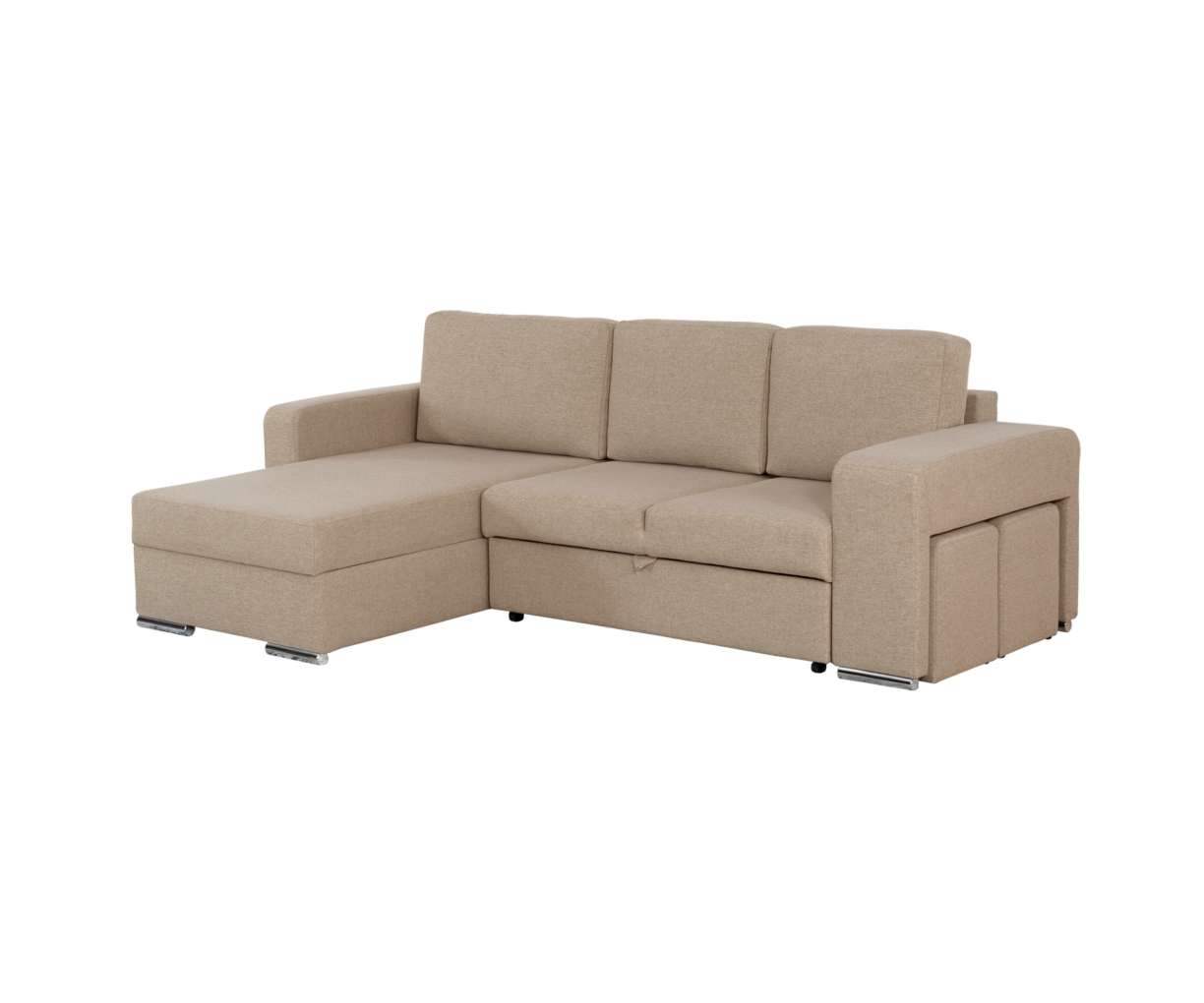- A cama elevatória prática transforma o sofá numa cama extra confortável, ideal para receber familiares ou amigos, sem comprometer o conforto nem o estilo. Além disso, o modelo inclui dois puffs multifuncionais, que podem ser usados como assentos adicionais ou repousa-pés, proporcionando maior conveniência e usabilidade.